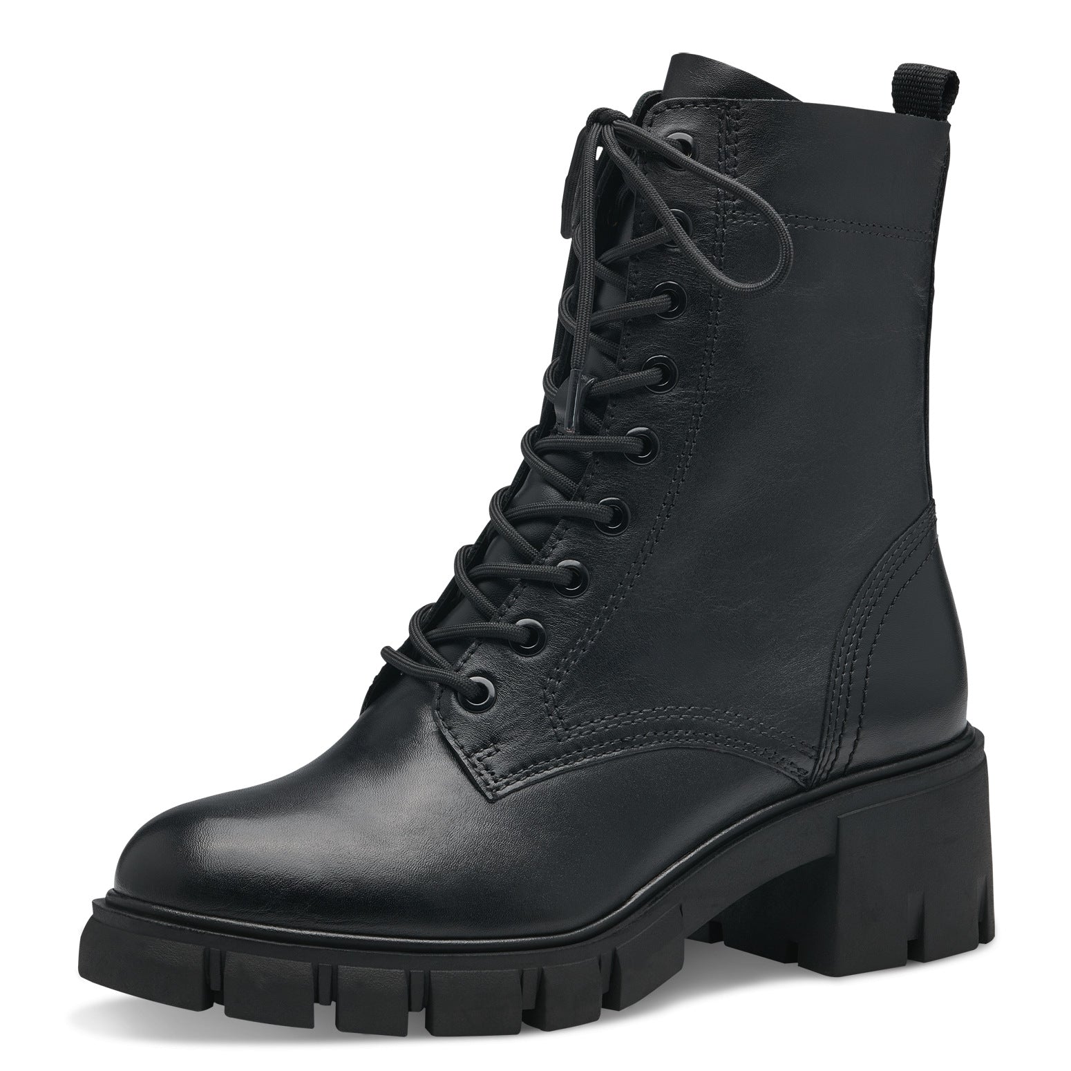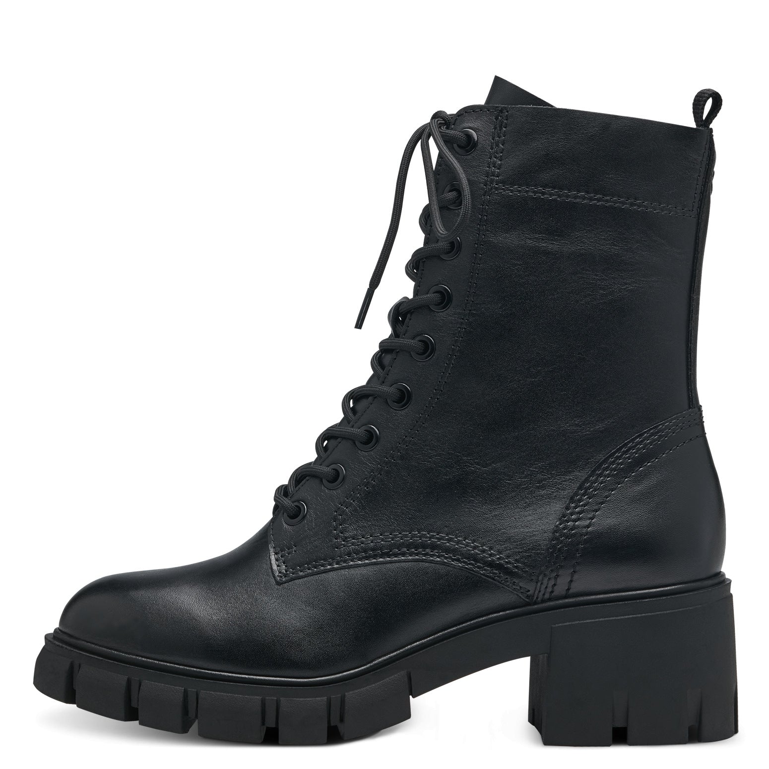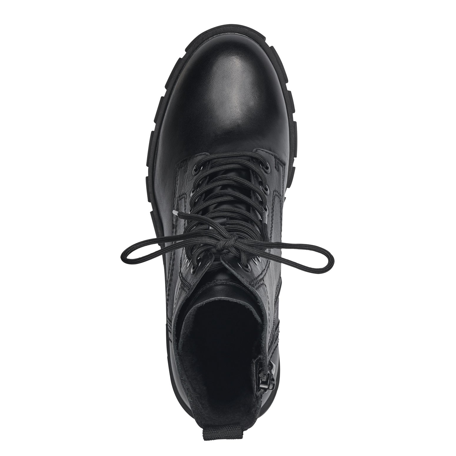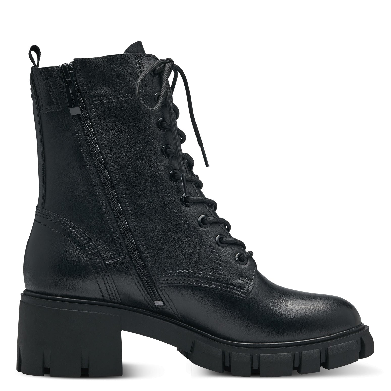 Bellissimo scarponcino in pelle nera con lacci e zip.