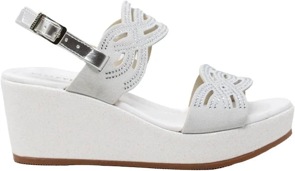 Il sandalo Valleverde 32210 in camoscio bianco con brillantini unisce stile, comfort e qualità artigianale italiana. Dotato di una doppia fascia decorata e cinturino regolabile con fibbia, questo sandalo valorizza il piede con eleganza e garantisce una calzata stabile e comoda per tutto il giorno.